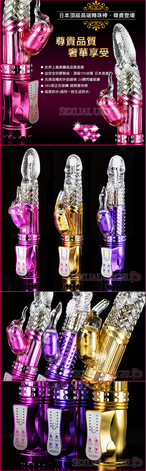 棒身360度正反旋轉,配合無極震盪,難以抵擋的深度刺激!整體設計符合人體工學,與身體配合更完美!靜音設計,生活防水設計,讓快樂無拘無束