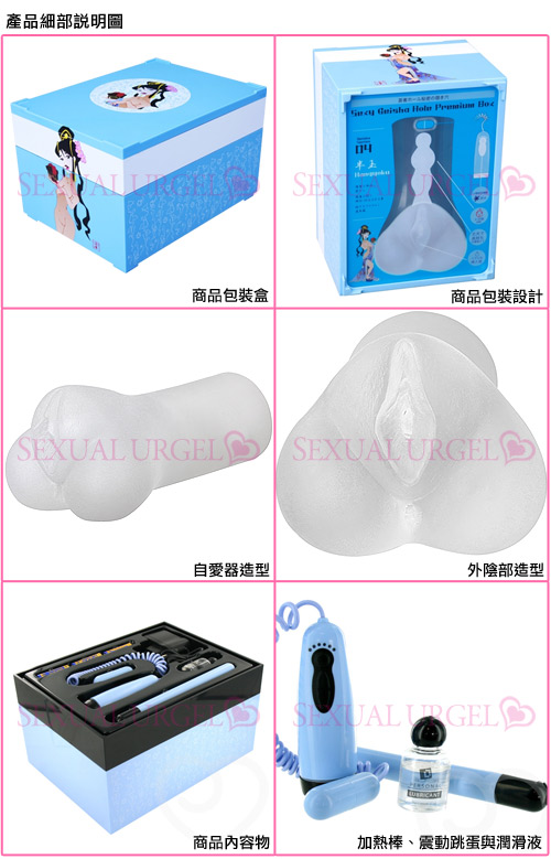 藝妓系列產品有豐富多樣的配件如加熱棒、充電器、USB連接線,多樣化的配件使得本產品更舒適更人性化。建議在使用之前,將加熱棒插入底部小孔,加熱十分鐘,產品就能達到正常人體溫度,使用起來更逼真更刺激。