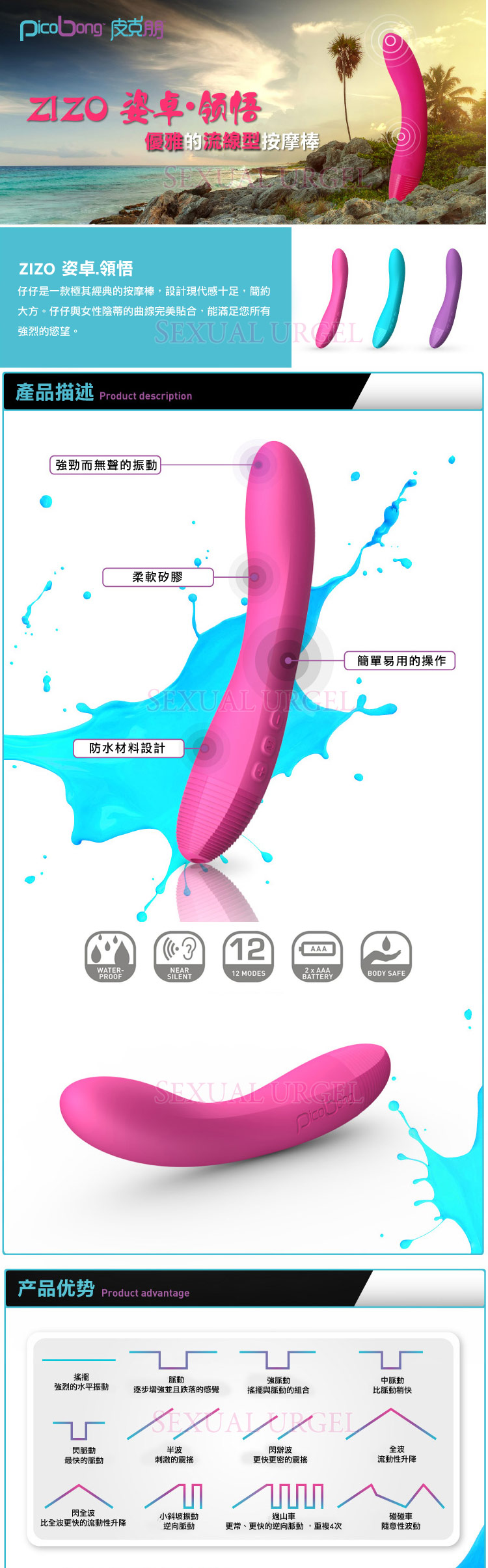 .主商品:瑞典PicoBong-ZIZO 姿卓 女性經典按摩棒-紫*1
