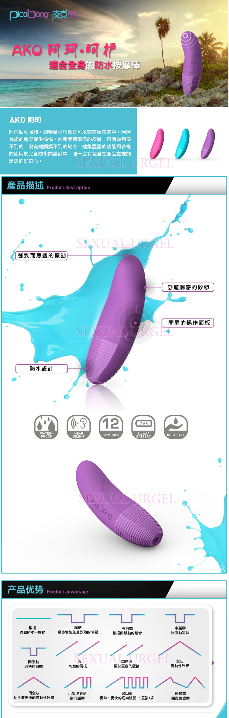 .主商品:瑞典PicoBong-AKO 阿珂 女性身體按摩器-粉 *1