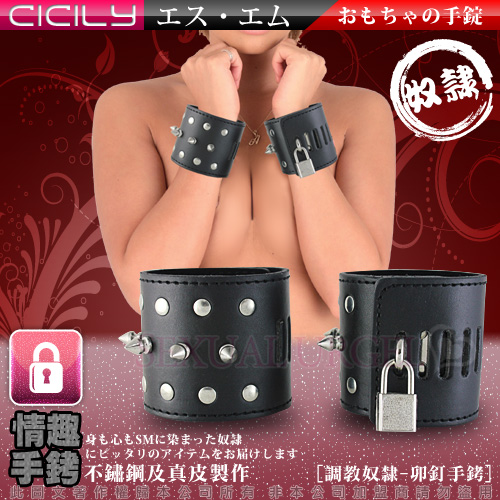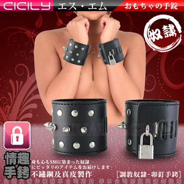 虐戀精品CICILY-調教奴隸-皮革鉚釘手腕銬(帶鎖)