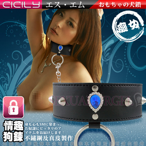 虐戀精品CICILY-寶石癡女-皮革鉚釘頸銬(含鏈鎖)
