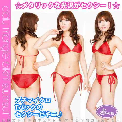 .主商品:虐戀精品CICILY-豪乳爆爆 塗膠仿皮 兩件式比基尼-紅*1