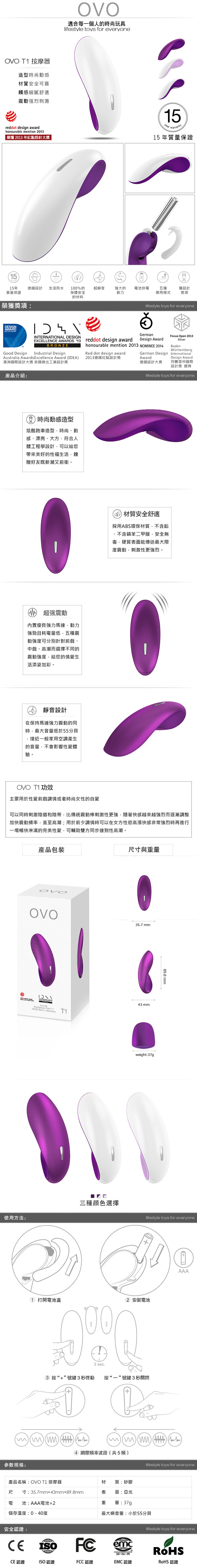 .主商品:德國OVO-T1 動感跑車 5段變頻 精品 震動按摩器-白紫色X1