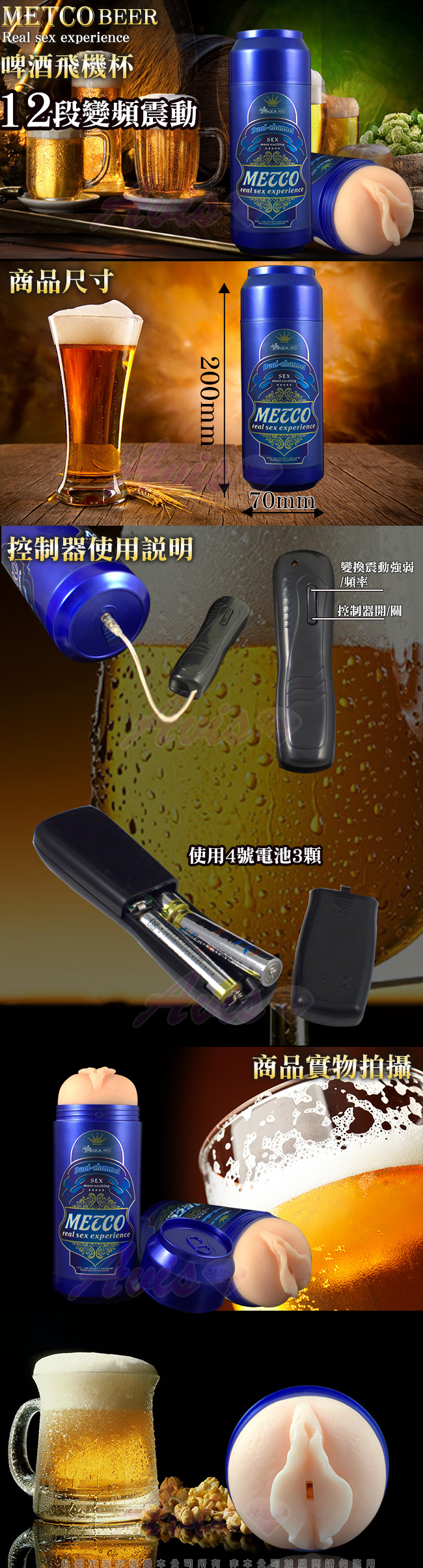 .主商品:METCO BEER淡啤酒 12段變頻 啤酒罐造型男用電動自慰杯x1