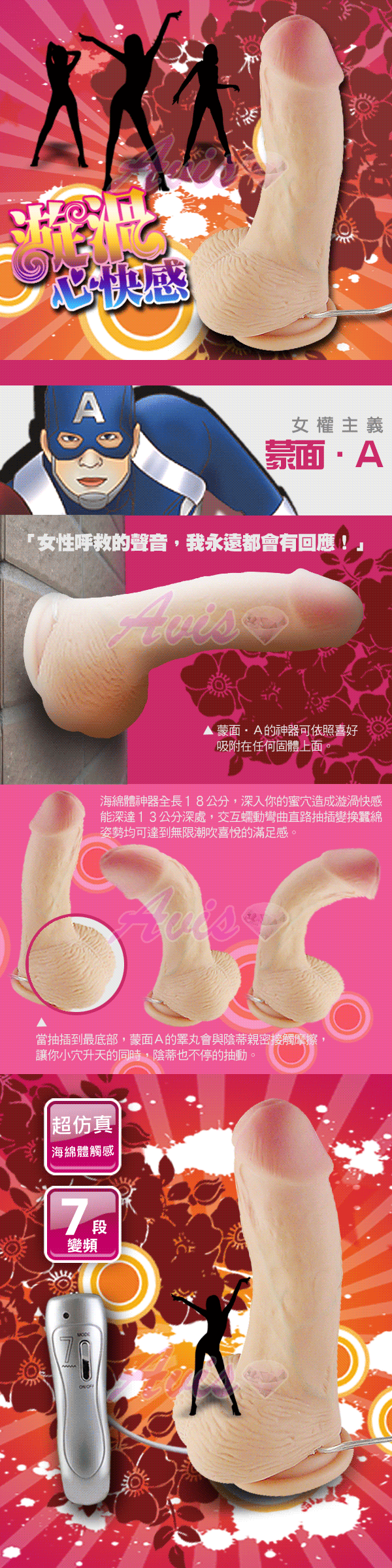.商品名稱:性愛隊長 蒙面A 海綿體觸感 7段變頻高潮神器(強力吸盤) 贈精液潤滑液150ML *1