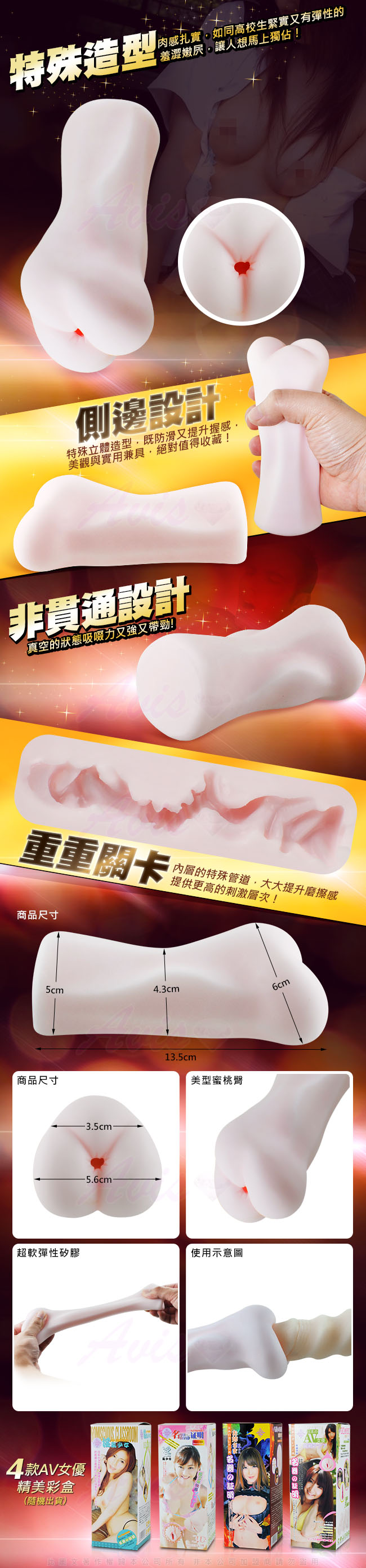 .商品名稱:放課後的邂逅 3D生腔 後庭 非貫通仿真吸夾名器(翹臀高校生)
