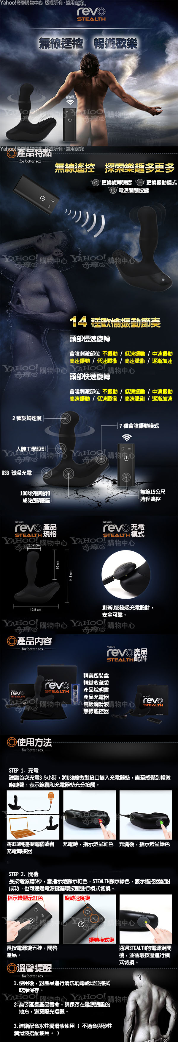 .主商品:英國Nexus-Revo 3 雷沃三代 無線遙控 7X2段變頻 G點前列腺旋轉按摩棒-黑 (磁吸式充電型*1
