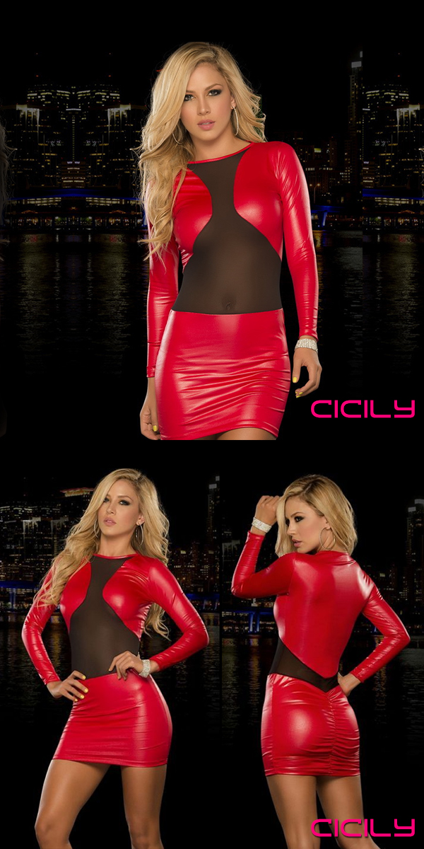 虐戀精品CICILY-惹火尤物 塗膠漆皮彈力緊身裙