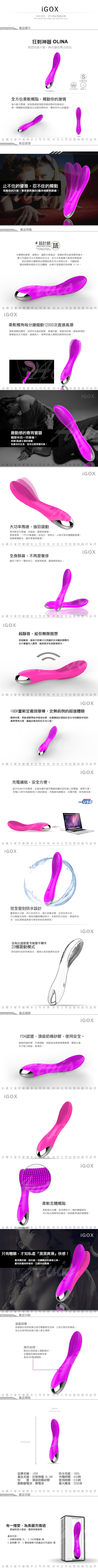 .主商品:香港IGOX OLINA 狂刺神器  20段變頻 G點 震動按摩棒 USB充電*1