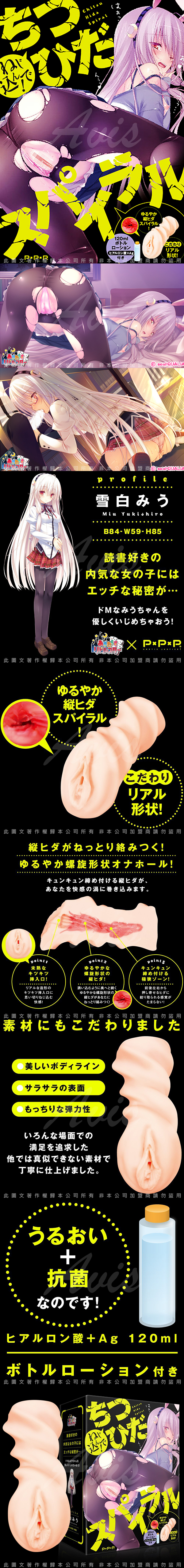 黏呼呼溫柔將你纏繞的螺旋形狀自慰器!漩渦般引誘你進入,縱紋緊緊吸住讓你欲罷不能!seal-QUALIA的電腦遊戲「流星物語」合作自慰器。120ml玻尿酸+Ag配合潤滑液組合