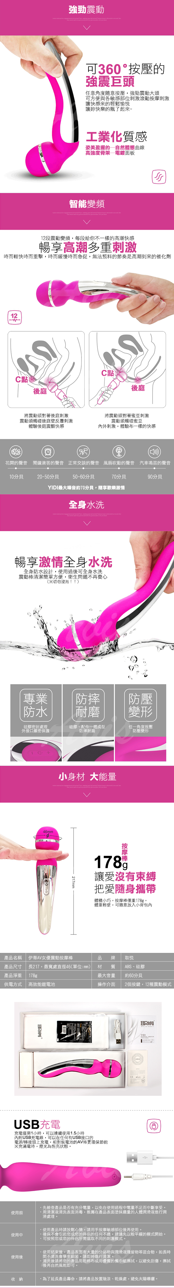 .商品內容:YIDI 伊蒂 12段變頻強震巨頭AV按摩棒