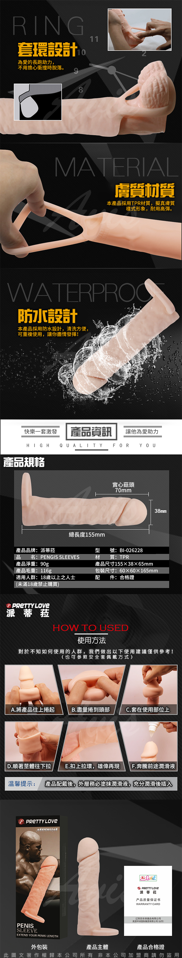 .商品名稱: PRETTY LOVE 一套勁享 仿真莖肉感英雄猛男套 粗型