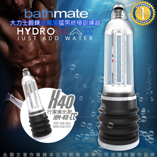 .商品內容:英國BATHMATE HYDROMAX X40 大力士鍛鍊水幫浦終極訓練器 透明白 行家進化款 HM-40-CC