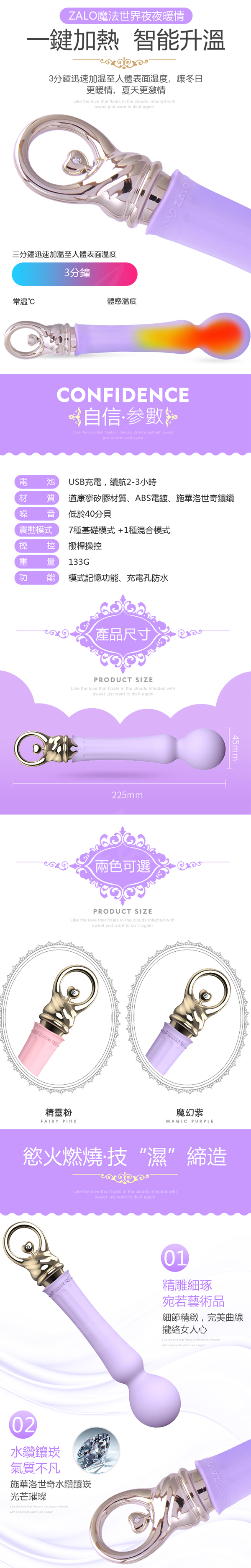 .商品名稱:法國ZALO 甜蜜魔法系列 Confidence 自信 加熱 強力震動魔法按摩棒