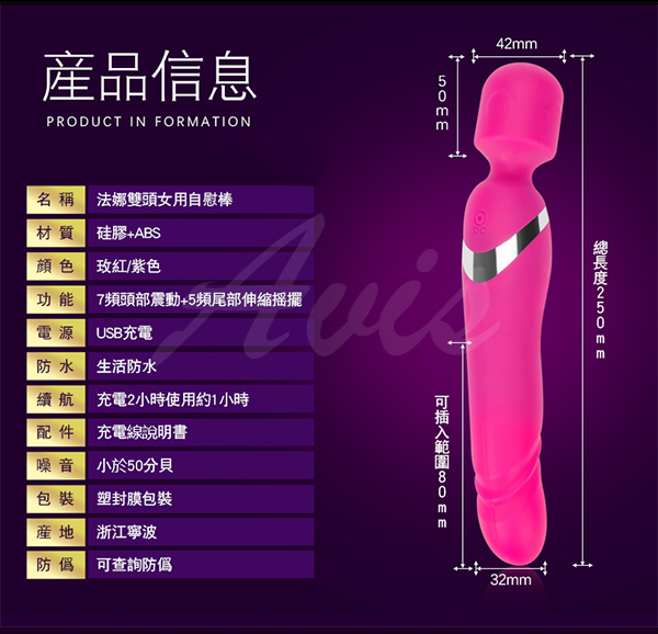 .主商品: 露娜 7X5變頻震動 搖擺伸縮AV按摩棒