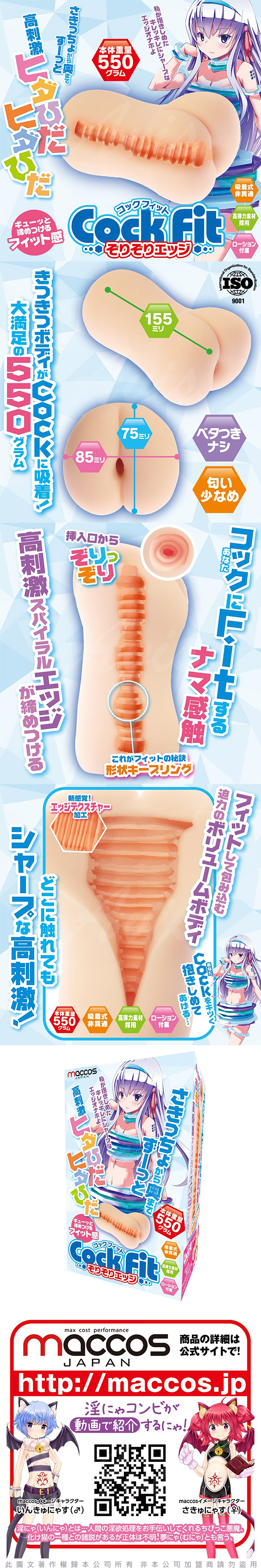 採用新感覺的邊緣紋理處理技術,打造全新螺旋邊緣的內部結構。看似簡單橫納,細看則能發現橫紋刻痕相當深入,每條深坑之間卻有突出的微妙小橫紋,此消彼長之下會使紋路感受更為清晰,非一般單一橫紋類別同級數。結構追求吸附力和產生清晰的螺旋邊緣刺激感,為名器附上新的意義。生產商Maccos著重高性價比,肉厚度可以是同價錢產品的兩倍,而且包裝,設計,素材,紋路各方面也一絲不苟,絕對值得支持!