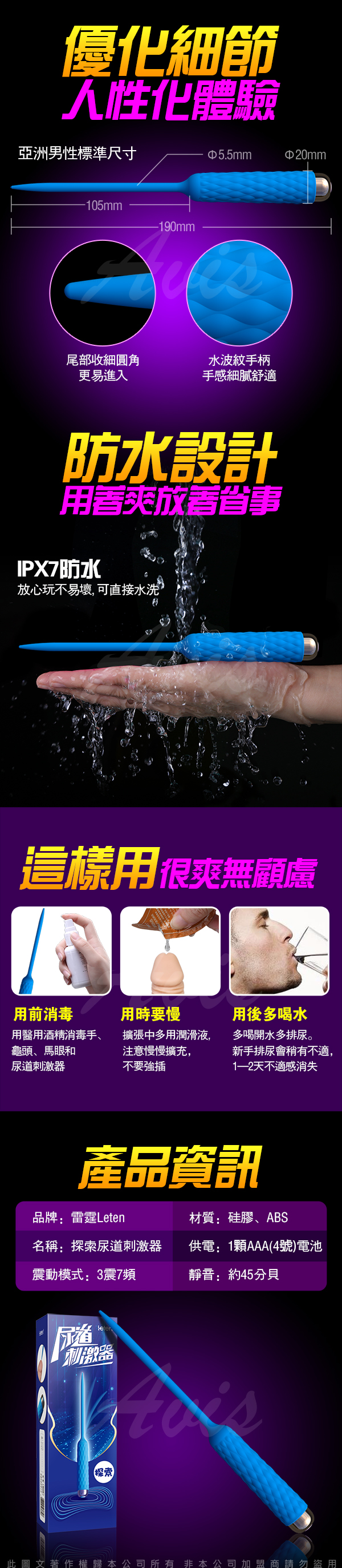 .商品名稱:Leten 探索 3震7頻防水尿道刺激器