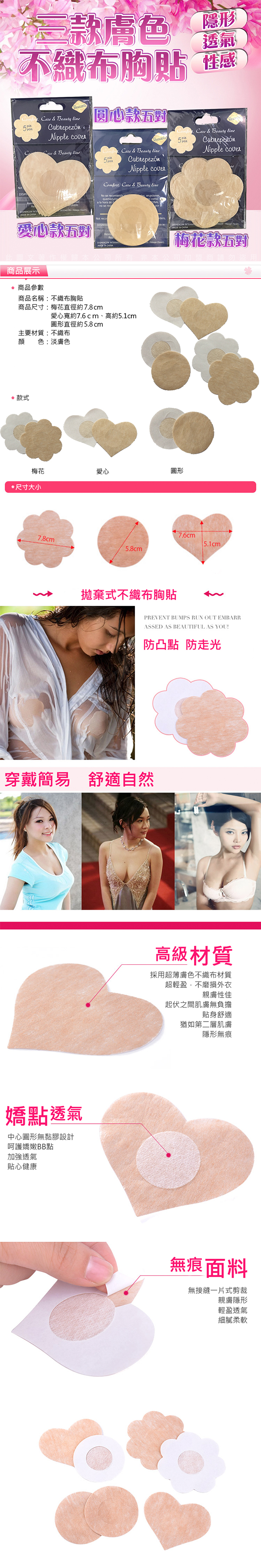 無紡布乳貼:防走光用、貼於乳頭乳暈處