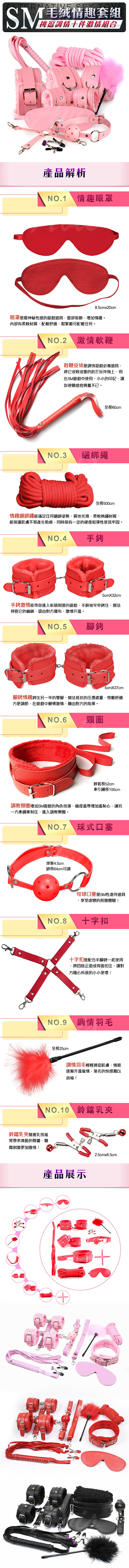 .商品內容:虐戀精品CICILY-無禁的愛 手銬/腳銬/繩子/鞭子/眼罩/脖子套/口塞/乳夾/羽毛/十字扣 十件組 紅