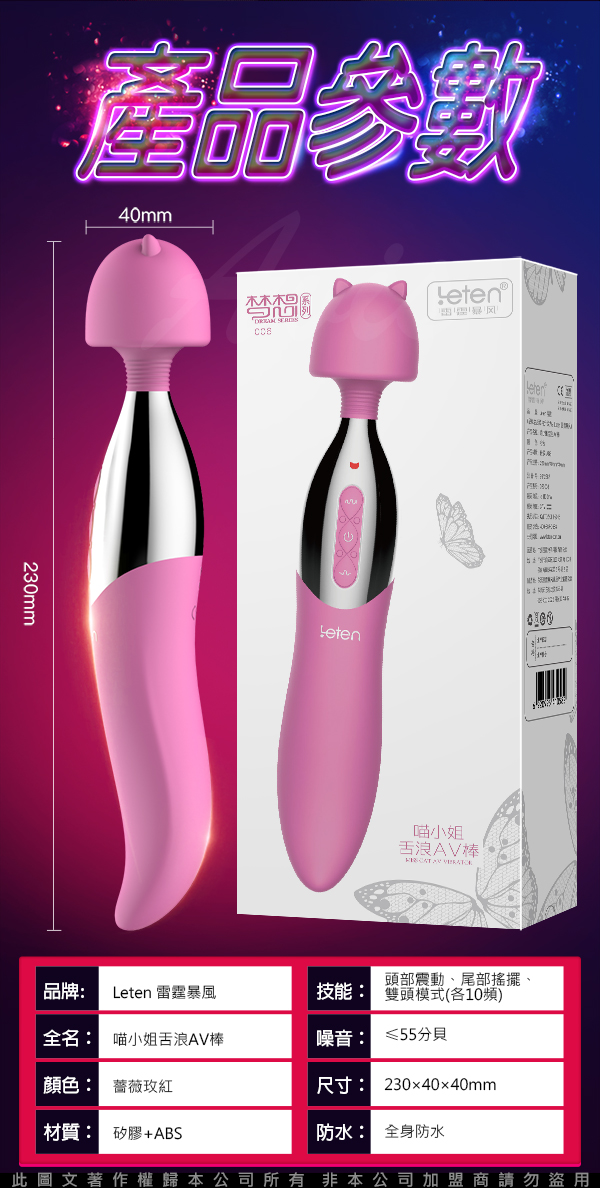 .主商品:Leten 喵小姐 一棒雙用舌浪加溫AV按摩棒
