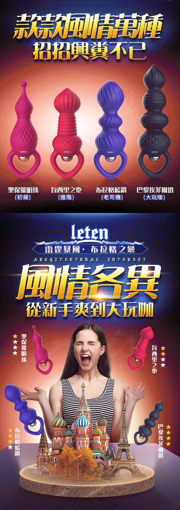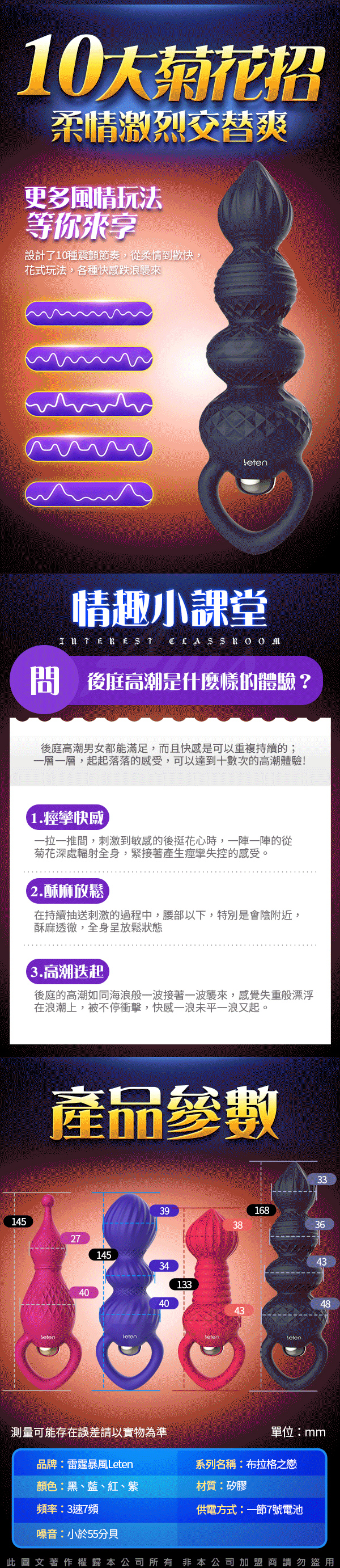.商品名稱:Leten-布拉格之戀 10頻 矽膠防水後庭塞