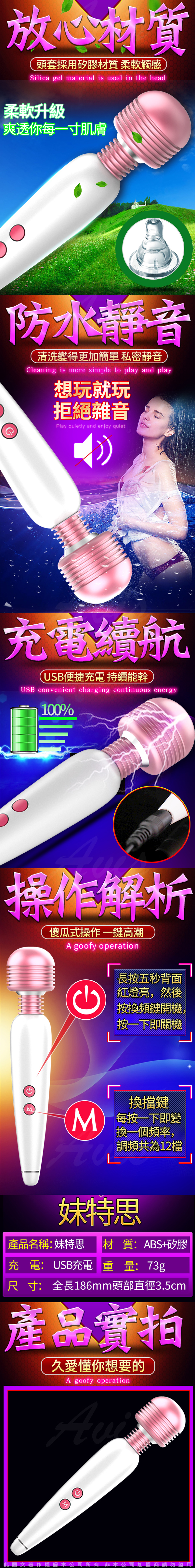 .商品功能:妹特思 12頻強力充電 AV女優按摩棒