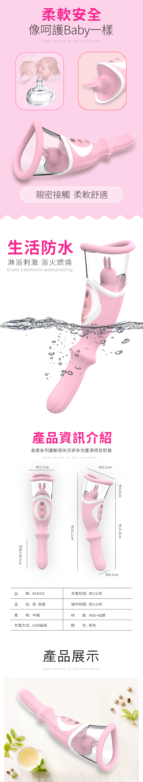.主商品:RENDS-泉 女用伸縮震動棒吮吸舌舔自慰器吸乳按摩器