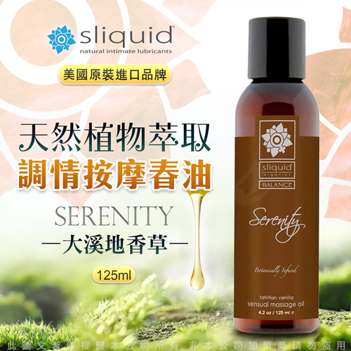 美國Sliquid-Serenity 平靜 天然植物萃取 調情按摩油 125ml-大溪地香草