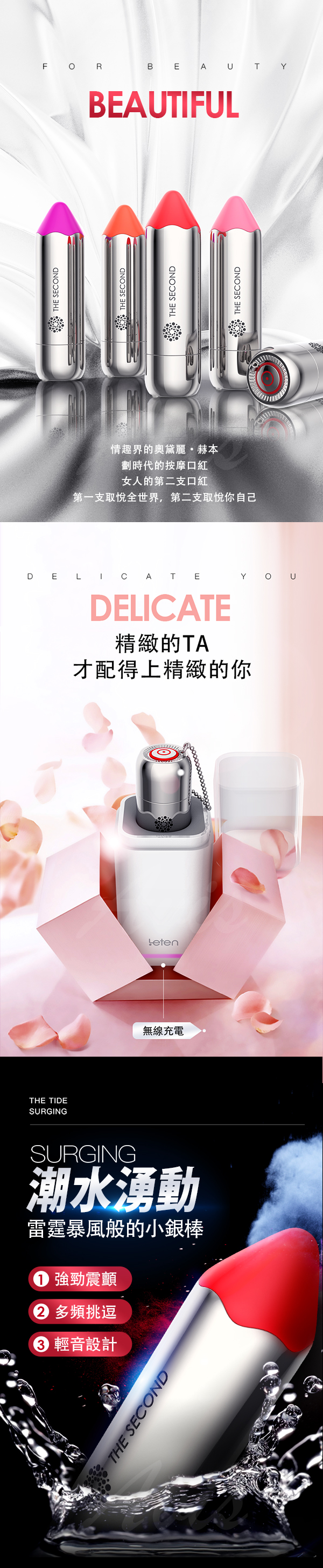 .主商品:Leten-小銀棒 10段變頻 無線充電防水口紅跳蛋 紫外線抑菌座充