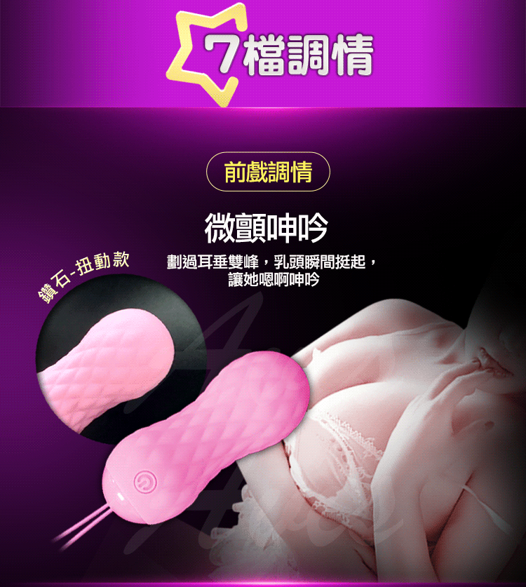 球身鑽石紋路設計,來回自動伸縮,充份磨擦敏感點,撞擊般的感覺,絕對激起妳潮水般的快感