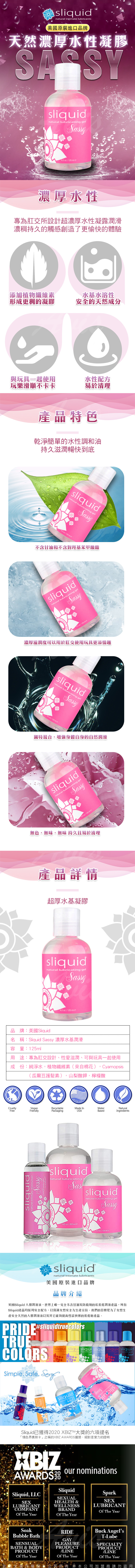 .主商品:美國Sliquid Naturals Sassy 天然濃厚水性潤滑液-125ml