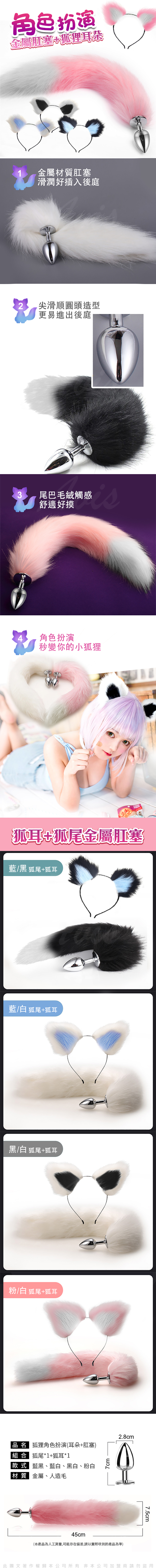 妖豔小狐狸角色扮演 毛絨耳朵+不鏽鋼肛塞尾巴 狐狸尾 白黑