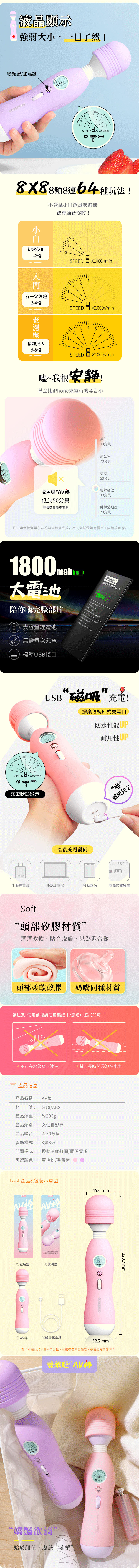 香港久興-羞羞噠 8x8變頻加溫液晶AV震動按摩棒-蜜桃粉