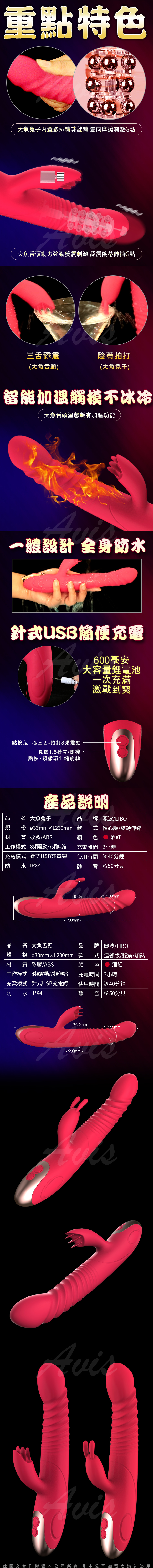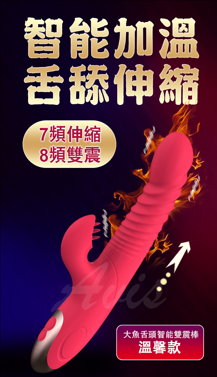 .商品名稱:LIBO-大魚舌頭 8x7段伸縮變頻智能加溫雙震G點按摩棒 溫馨版