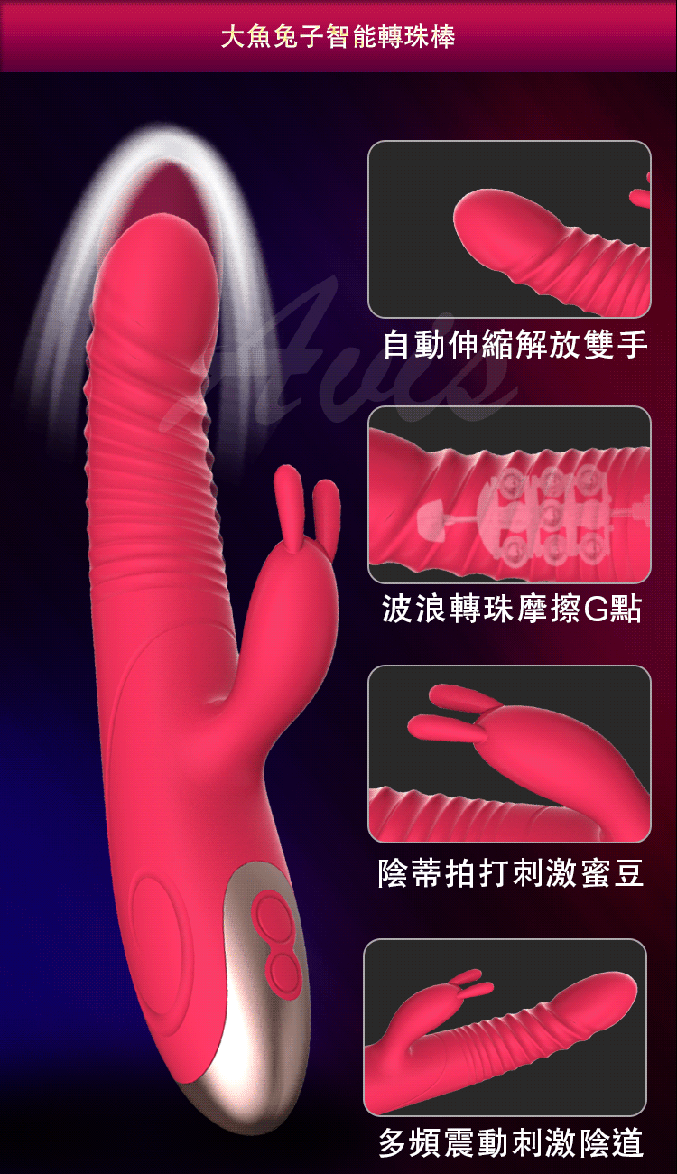 大魚系列舌頭版為擁有一棒多用功能全面再升級!!強勁8段變頻震動搭配7頻自動伸縮功能雙面迎擊,讓您淫水源源不絕攪動您的花心。符合女性私密結構設計更緊密的貼合,在抽插的碰撞G點同時仿舌舔弄您的蜜豆讓您感受連環性全身抽搐快感。還擁有貼心智能加溫功能讓您擺脫冰冷,體驗如真人般的體溫喔~採用一體設計防水功能讓您清洗方便使用愉快