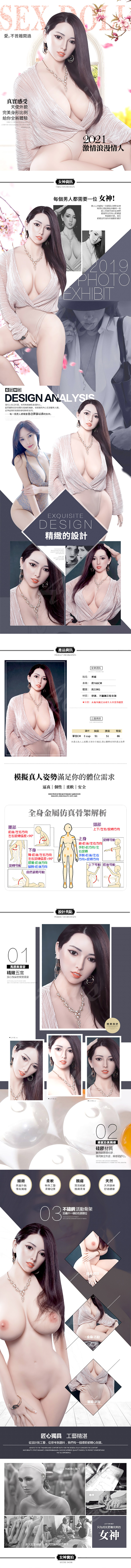 【材料】外皮(皮膚)為高級無毒超軟TPE,內有金屬骨架,四肢的活動範圍與真人類似。