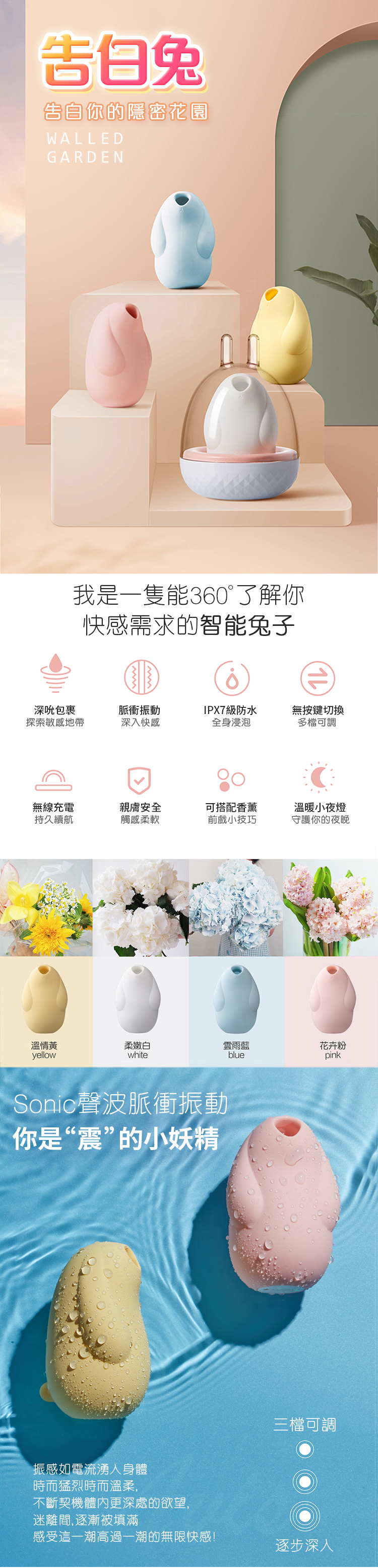 Sonic聲波脈衝振動可以穿透皮膚,通過刺激豆豆表面的敏感神經喚醒陰道深處 8000多個隱藏神經,形成共震,引發山洪噴發般的快感