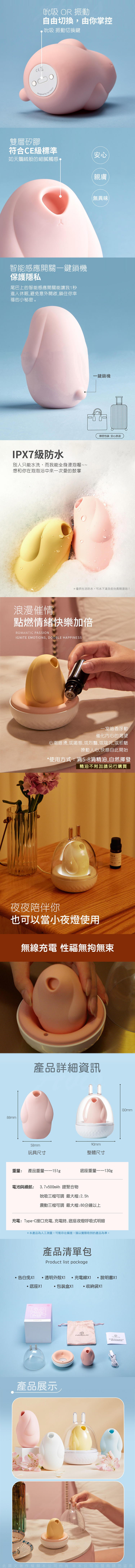 商品名稱:告白兔 真空吸吮+聲波 脈衝震動器 底座薰香+夜燈功能