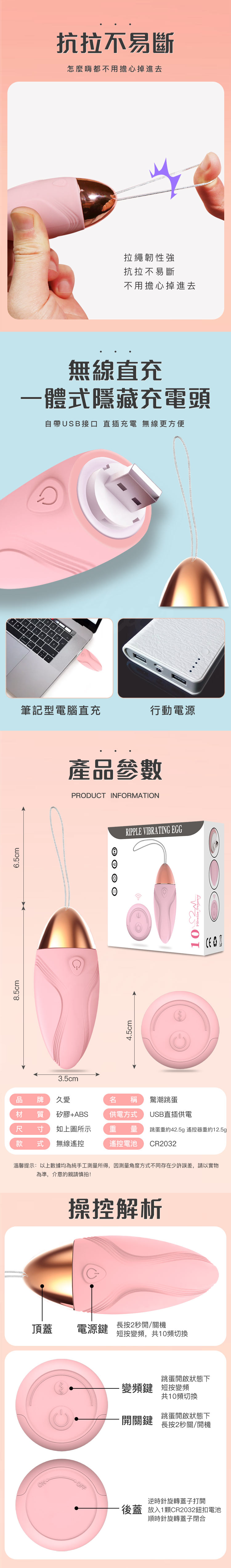 名稱:驚潮 10段變頻柔軟矽膠遙控跳蛋-粉色