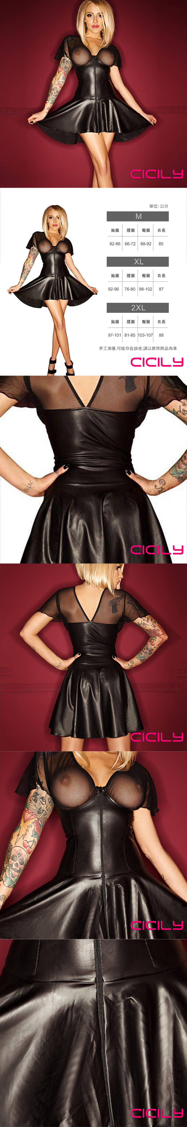 .主商品:CICILY 性感V領透視網紗袖連衣裙 漆皮膠衣 XXL