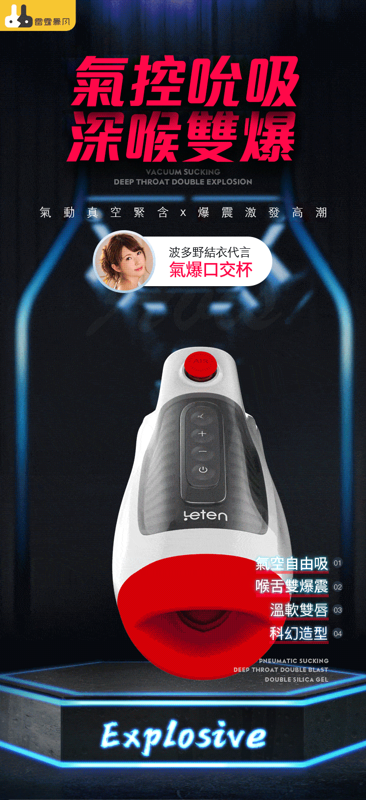 LETEN 雷霆暴風 波多野蜜唇 氣爆口愛發聲飛機杯