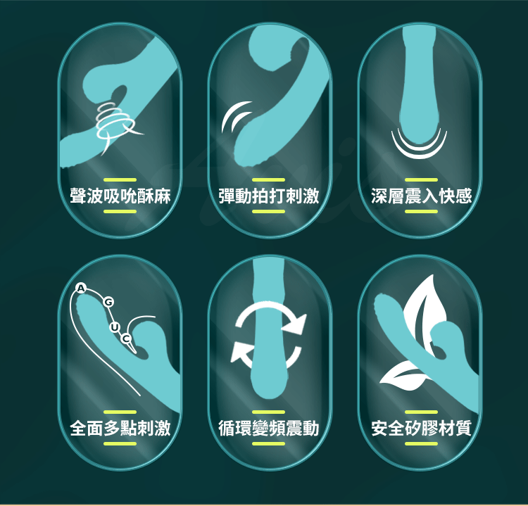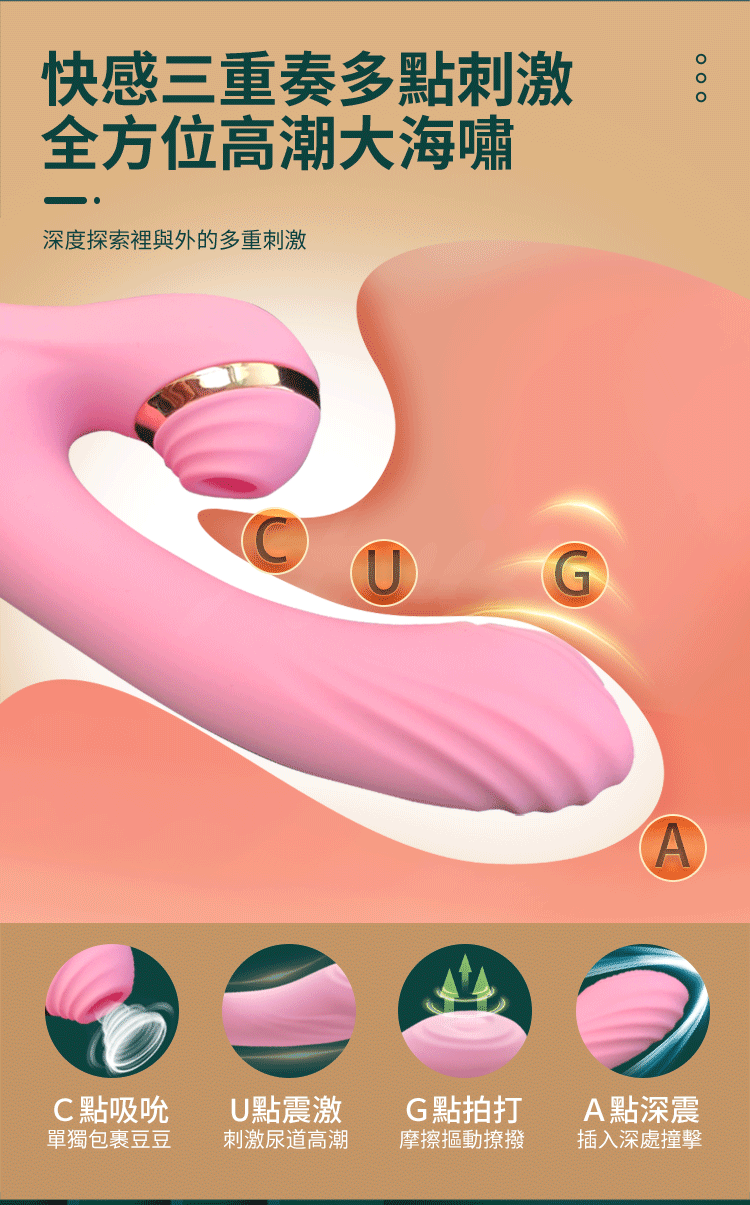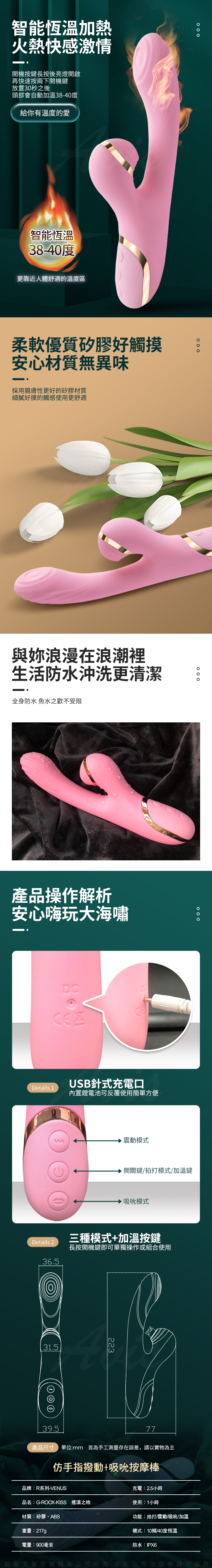 Venus搖滾之吻 ACGU四點爆發 仿手指撥動+吸吮按摩棒-加溫款