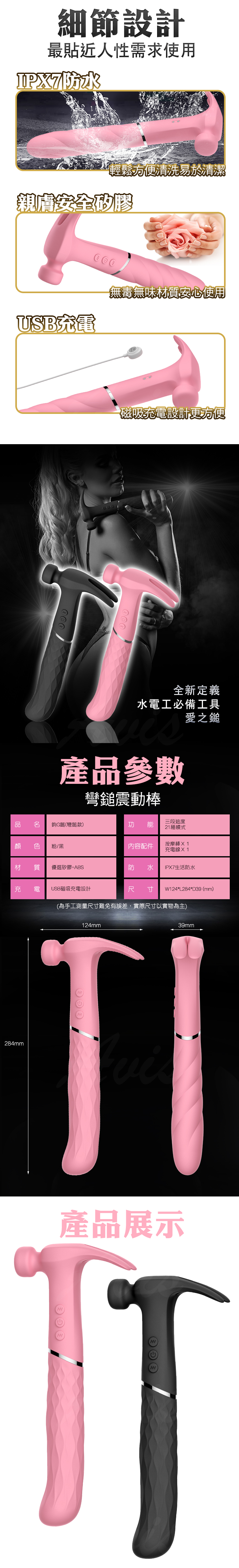 品名:做工的人 鎚子造型 敲彈 夾逗 插震 按摩棒