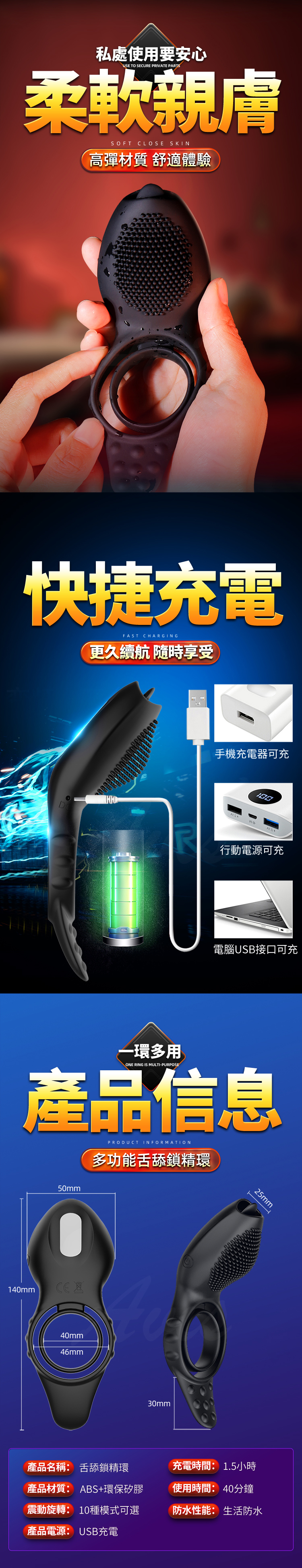 產品名稱:狂舔|舌舔鎖精環|震動環