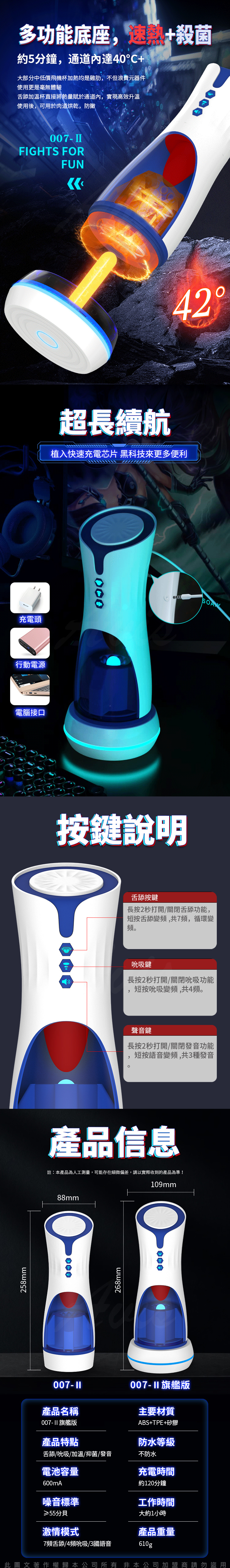 產品名稱:Hgod 007-II 旗艦版|舌舔+吮吸+分體|加熱快感電動飛機杯