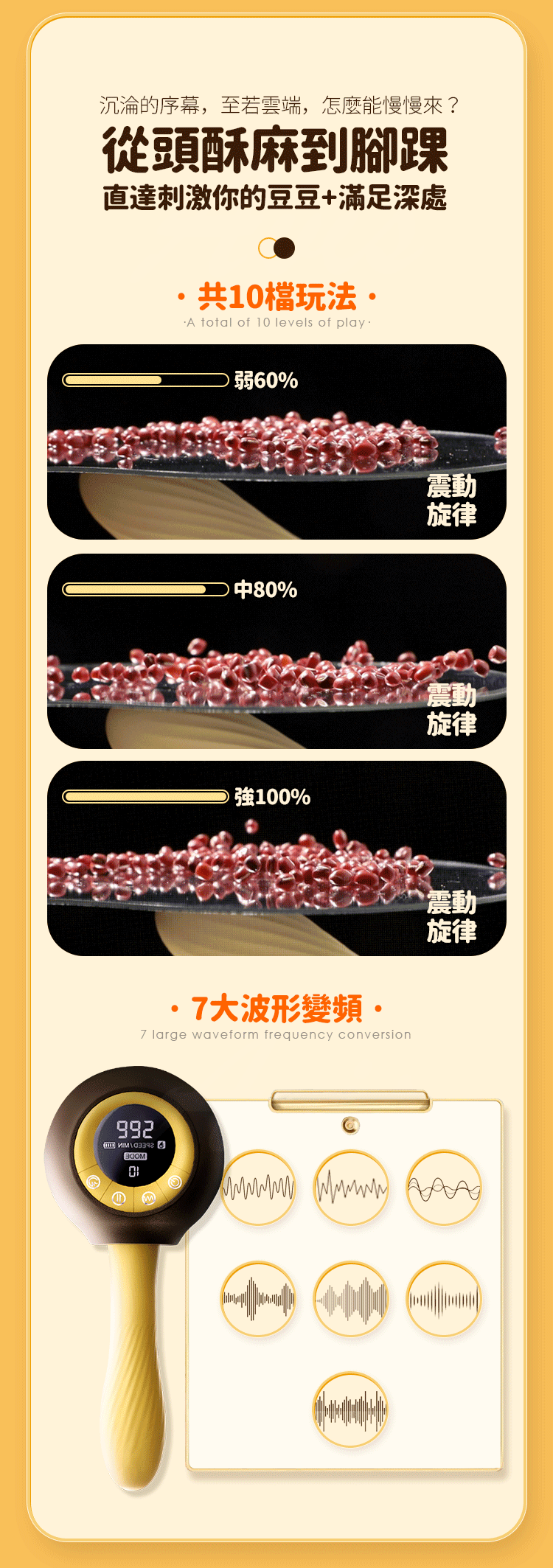 功能:智能液晶顯示,伸縮10頻,震動10頻,自動加