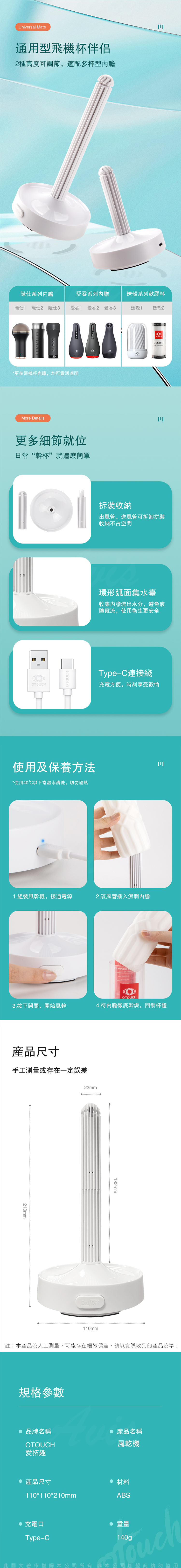 產品名稱:OTOUCH|飛機杯專用風乾器