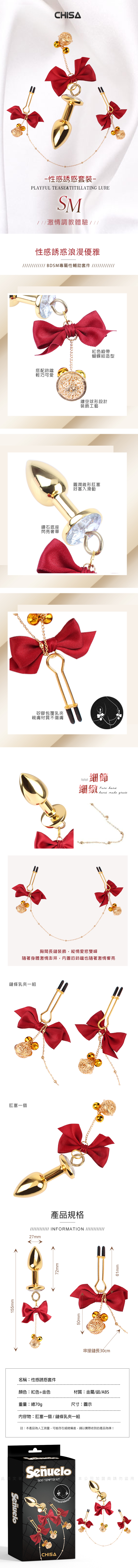 名稱:CHISA|性感誘惑|肛塞+乳夾 SM套件
