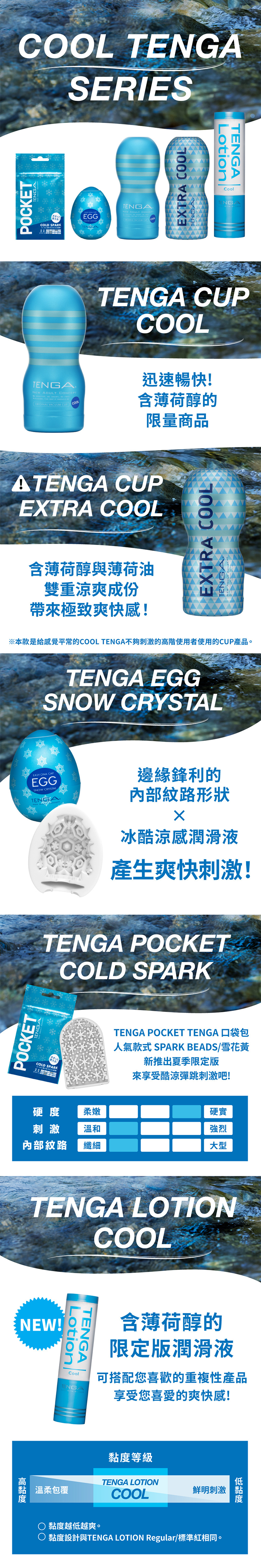 「COOL TENGA系列」在夏天帶給許多男人一個涼爽的自娛時刻, 帶來涼爽感的薄荷成分的潤滑液,讓您在尻尻時也能沁涼一下 !